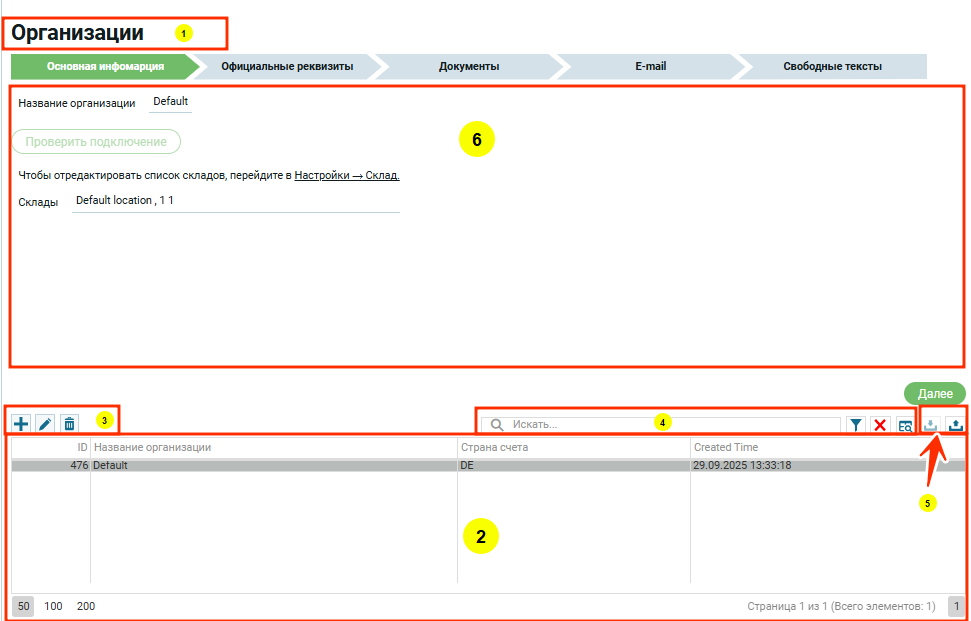 Перейти в настройки, выбрать пункт Организации — открывается интерфейс с настройками Организаций.