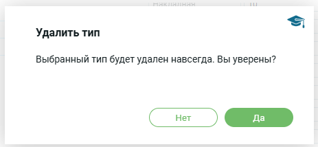 Появится модальное окно с подтверждением удаления типа документа, после подтверждения удаления, документ исчезнет из списка типов.