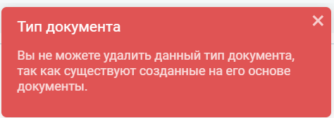 Если к данному типу документа уже есть привязанные шаблоны, то появится сообщение о невозможности удалить данный тип документа.