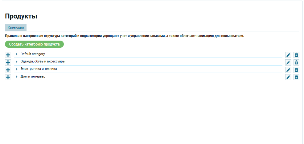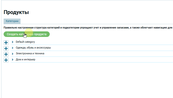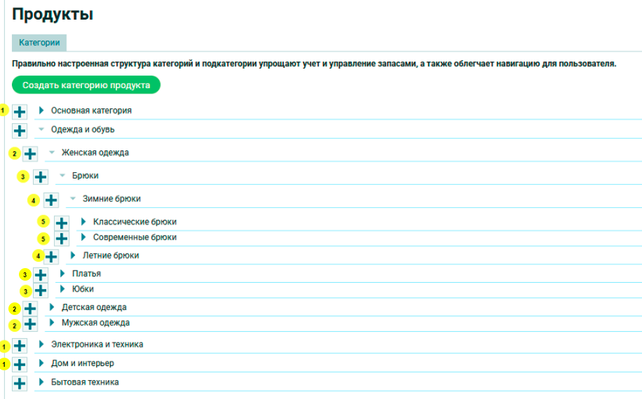 • Создавать основные категории (например, «Одежда», «Электроника», «Товары для дома»);
