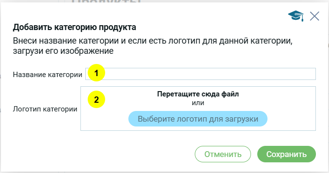 Откроется модальное окно для создания категории.