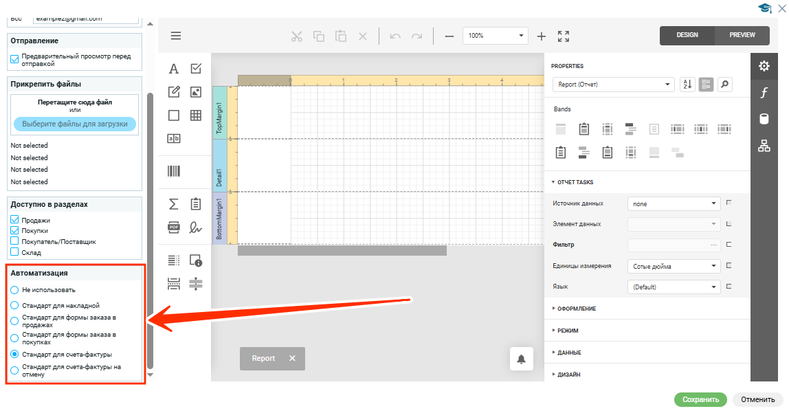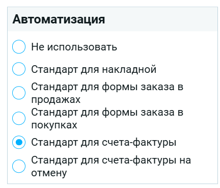Например, для создания счет-фактуры будет использоваться шаблон E-Mail счет-фактуры и соответственно в модуле Автоматизация будет активирована позиция Стандарт для счет фактуры.