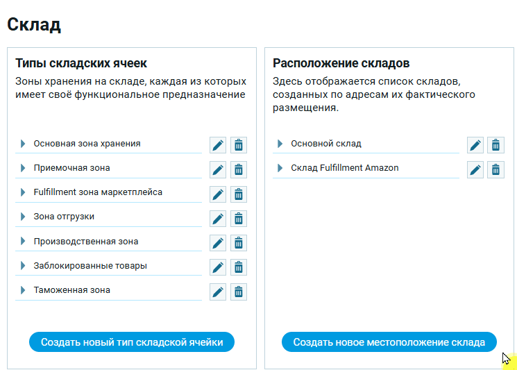 << Вернуться назад к настройкам склада