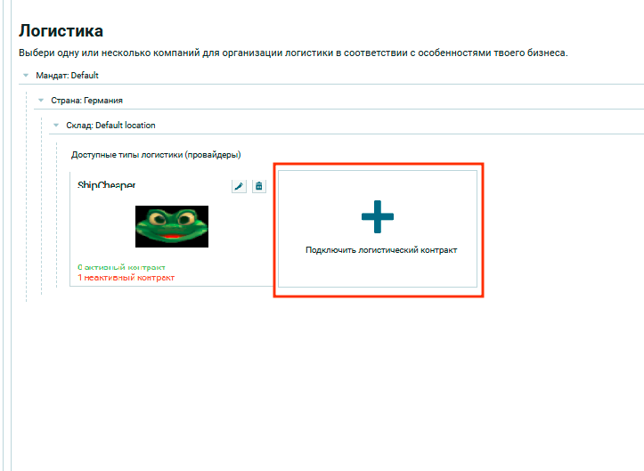 Для этого нужно нажать на крестик в модуле «Подключить логистический контракт».