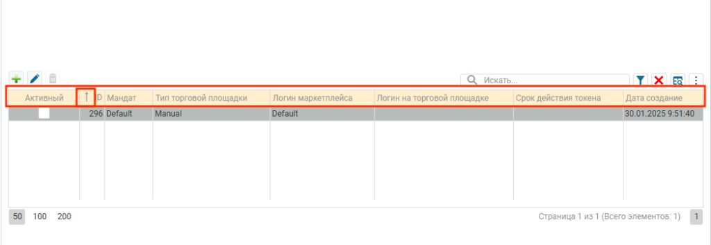 - Иконка отменяющие все условия поиска, фильтрации и сортировки;