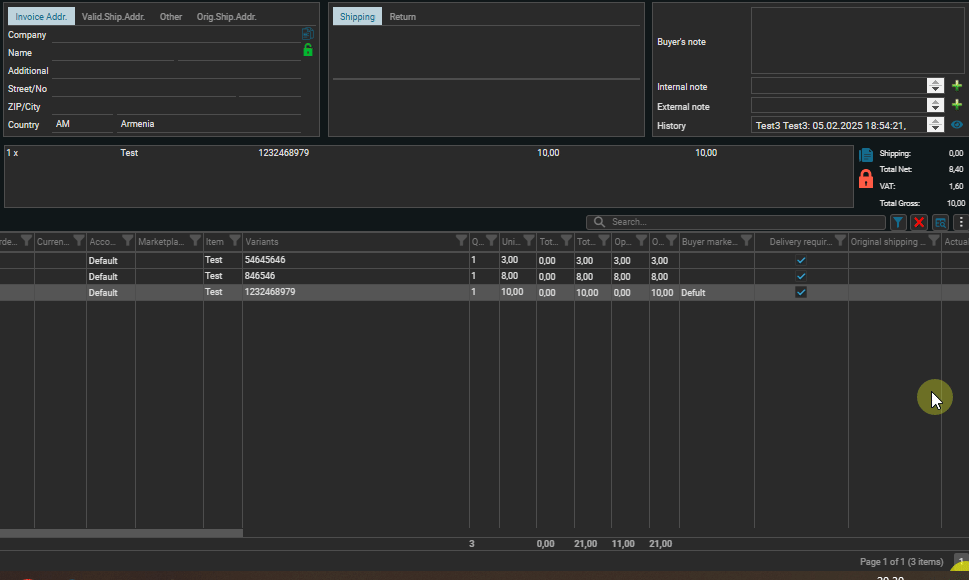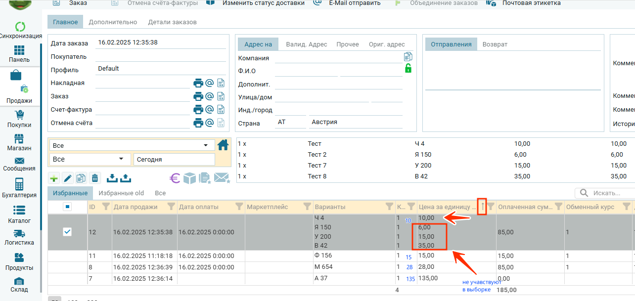 - В заказе Id 12 — в столбце «Цена за единицу брутто» значение первой позиции равно 10;