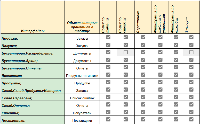 Интерфейсы, где есть таблица с объектами >>>