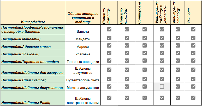 - Экспорт табличных значений в Excel формат;