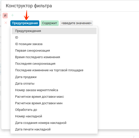 Если в значениях для фильтра убрать позицию «10» — это значение первой товарной позиции в мультизаказе — то в из таблицы исчезнет весь мультизаказ.