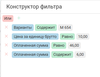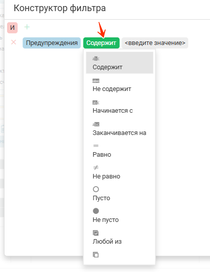 - Иконка «Умный фильтр» — модальное окно в котором можно задавать несколько условий для фильтрации по таблице;