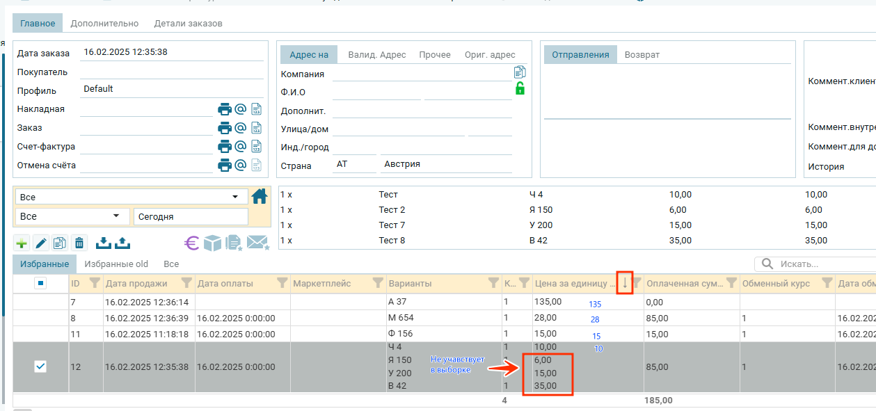 - Значения, которые были в мультизаказе в выборку не попали, мультизаказ в таблицу не попал;