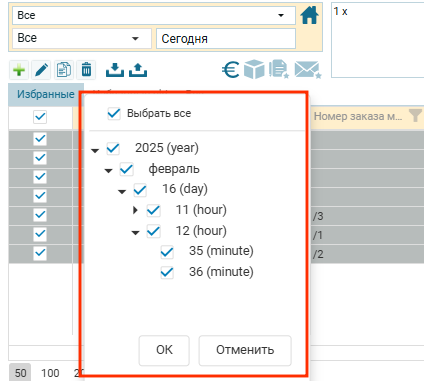 Сценарий №2. Выбор критериев поиска для мультизаказа. Например, выбрать только первое значение: