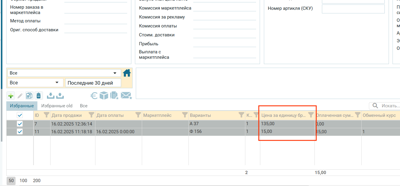 - В заказе Id 11 — в столбце «Цена за единицу брутто» значение равно 15;