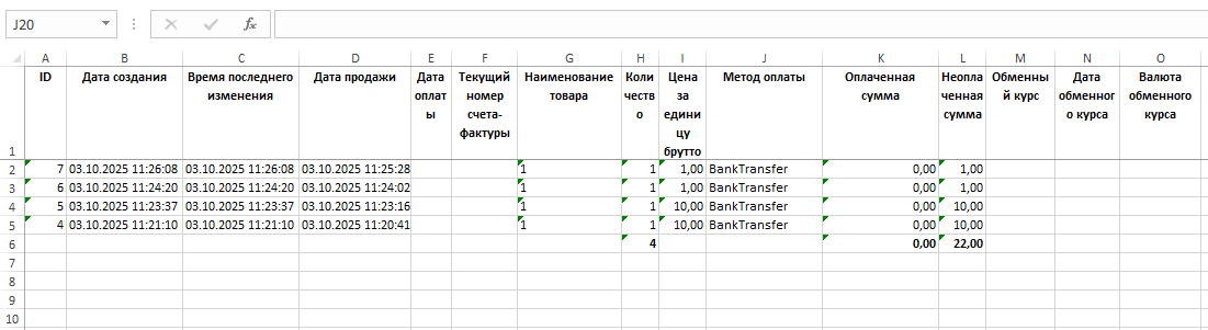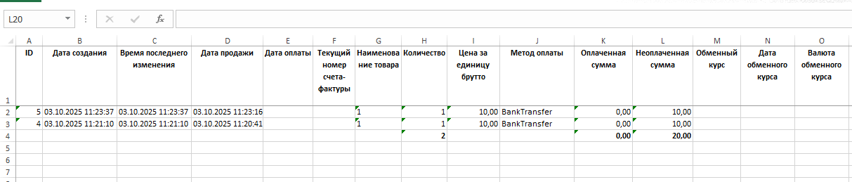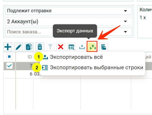 Это значит, экспортировать все заказы, которые загружены в таблице, на компьютер пользователя в Excel формате.