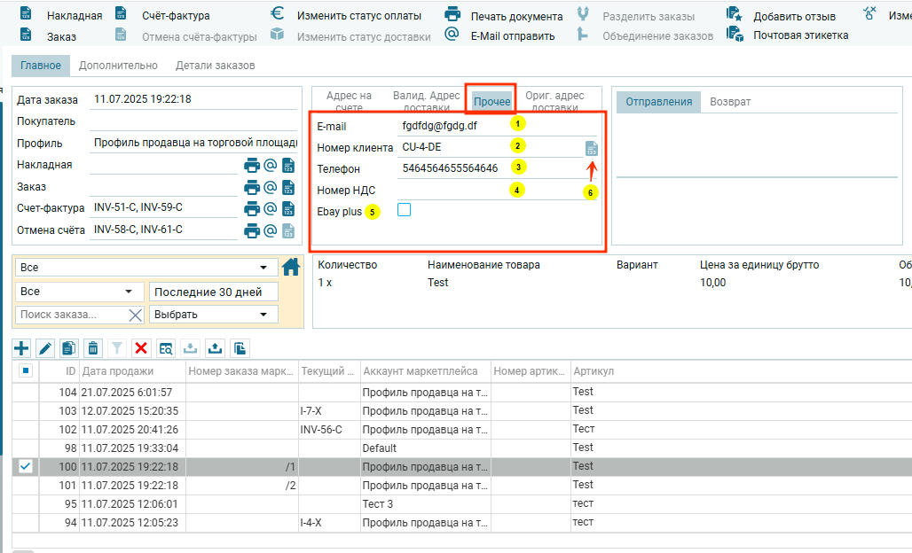 Кроме адреса вкладок с адресами есть еще вкладка «Прочее» в которой отображаются контактные данные и прочая информация о покупателе.