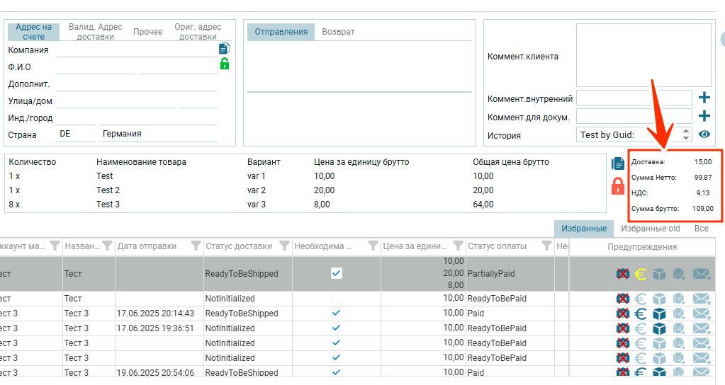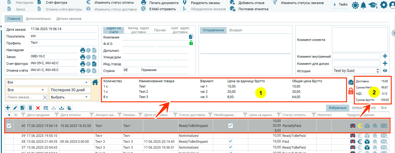 На скриншотах ниже представлена область обзора заказа, которая позволяет просматривать финансовую информацию без необходимости открывать сам заказ. Достаточно просто выделить нужный заказ в таблице.