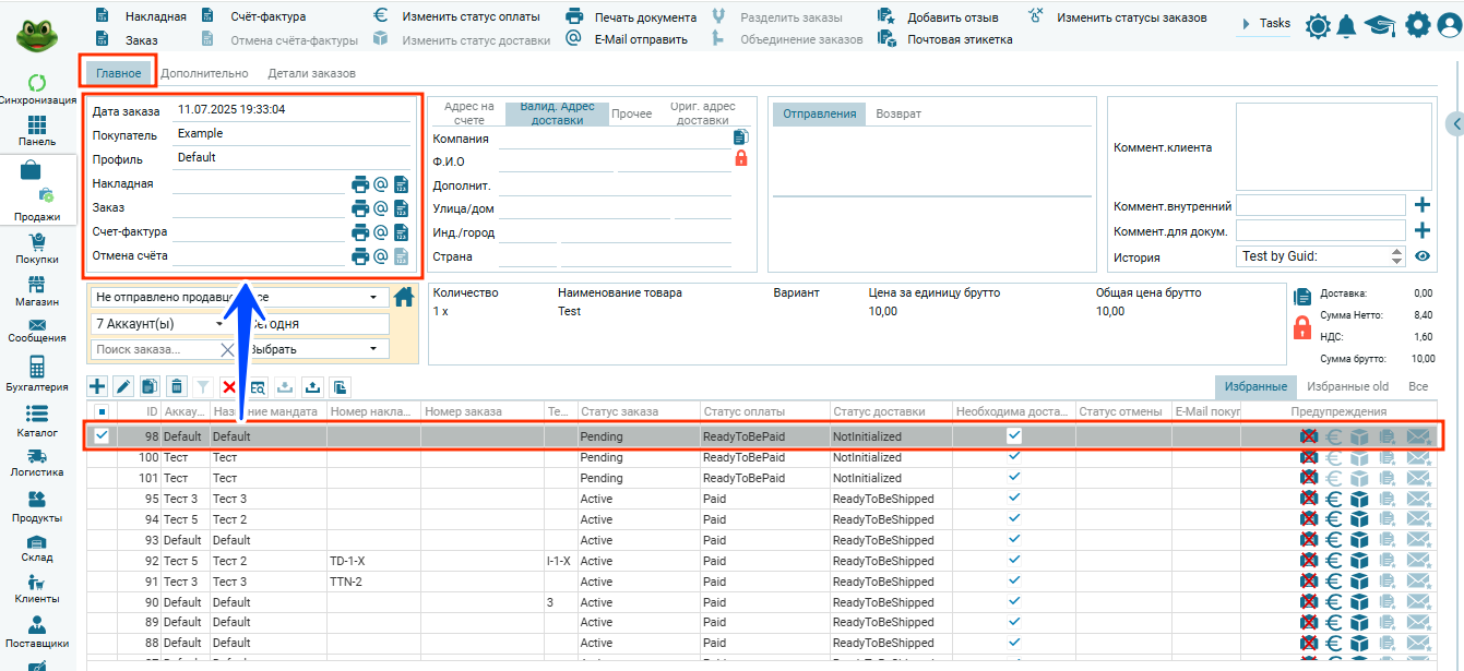 2. Кто покупатель — название покупателя приходит с маркетплейса или вводится вручную при создании заказа вручную;