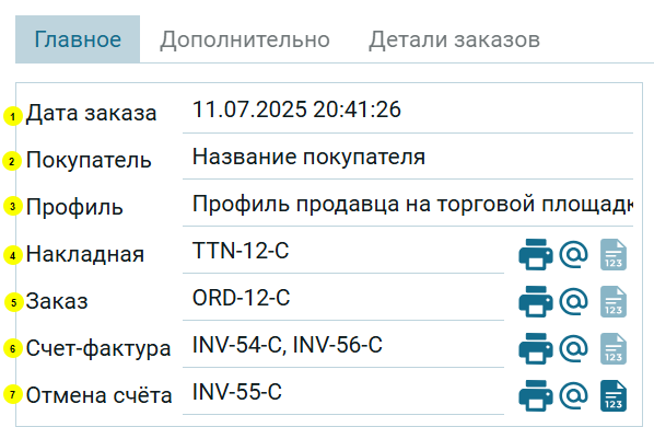 3. Профиль продавца на торговой площадке — приходит с маркетплейса или заполняется при выборе мендаа, когда пользователь вручную создает заказ;