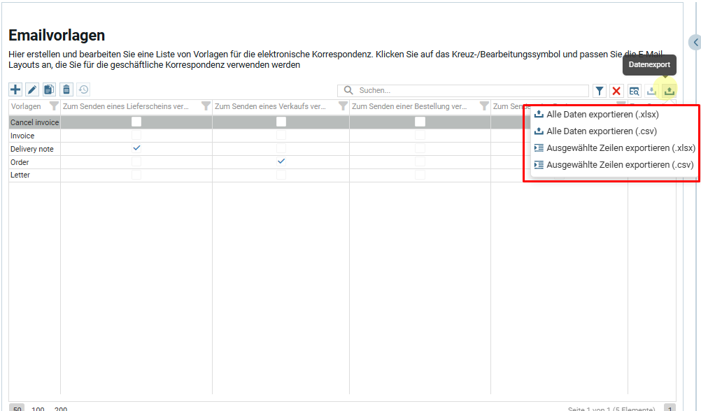 - Экспортировать выбранные строки;