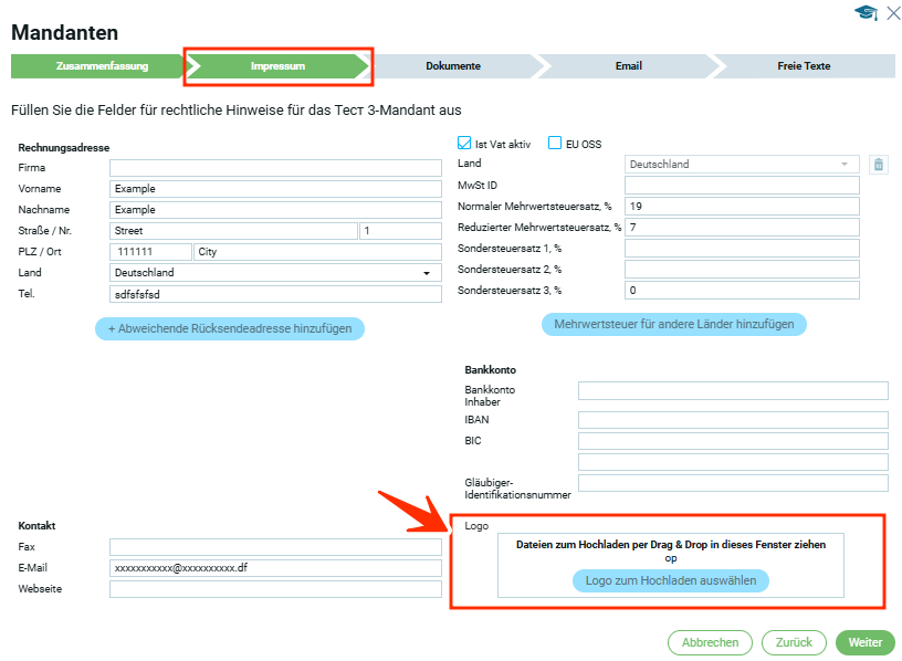. Выбрать вкладку «Правовая информация«, перейти к выбору / редактированию логотипа.