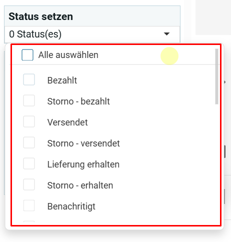 Выпадающий список статусов документов