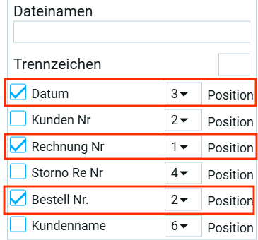 - Далее, нужно в имени фигурировала дата, значит ставим галочку в поле Дата. Дата будет стоять в конце, ставим порядковый номер 3;
