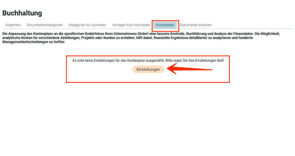 В случае использования плана счетов для ведения бухгалтерского учёта, пользователь обязан предварительно загрузить его в систему. Для этого нужно нажать на кнопку „Настройки„: