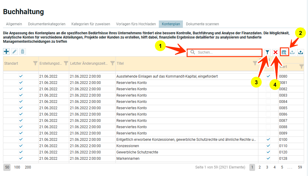 Оптимизация списков счетов или работа с данными в таблице включает (пункты в списке соответствуют нумерованным кружочкам на скрине):