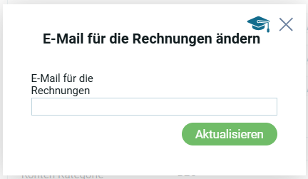 Для редактирования E-Mail нажмите на иконку справа от поля, откроется модальное окно для внесения изменений.