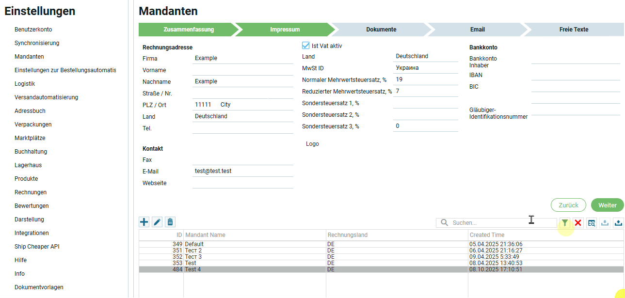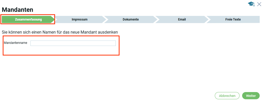 Вкладка Основная информация в модальном окне содержит одно поле – название мандата. Первая организация создается автоматически при регистрации с названием „Default„. Все последующие организации создает и именует пользователь;