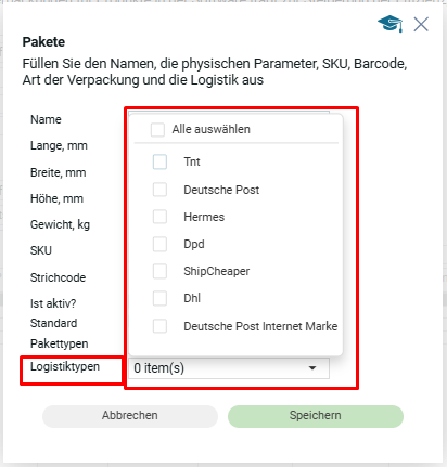 8. Тип логистики – это перечень логистических компаний, доступных для отправки товаров с указанным типом упаковки. Он определяет, какие службы доставки можно использовать при комплектации и отгрузке заказов, соответствующих данному формату упаковки;