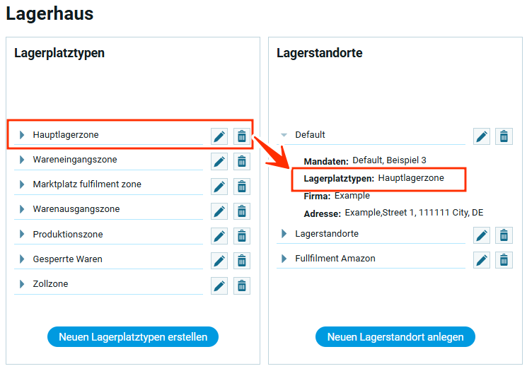 Например, в типе складской ячейки „Основная зона хранения“ выбран зеленый цвет ячейки. Данный тип складской ячейки используется в складской локации „Default location„.