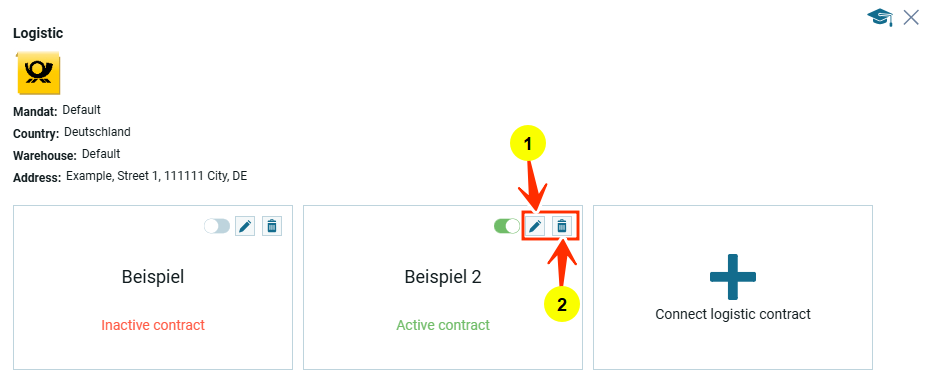 Для редактирования и удаления логистических контрактов существуют кнопки управления: