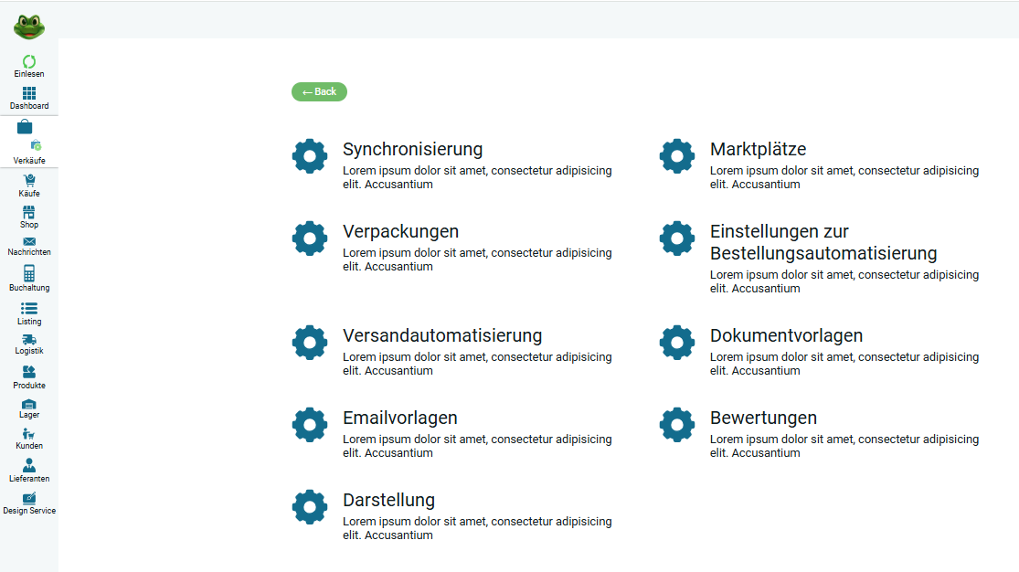 Во втором случае – откроется страница с ограниченным списком настроек. Щелкни по выбранному модулю в списке и ты перейдешь к нужным настройкам или нажми на зеленую кнопку со стрелочкой и вернись в интерфейс для работы с продажами.