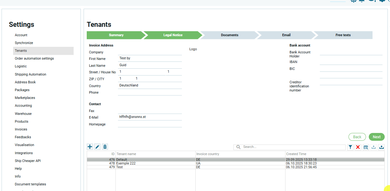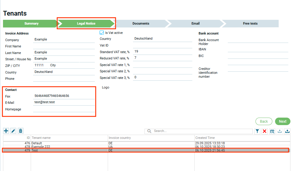 - E-Mail. Для деловой переписки. В Default организации стоит значение, которое пользователь внес при регистрации ;