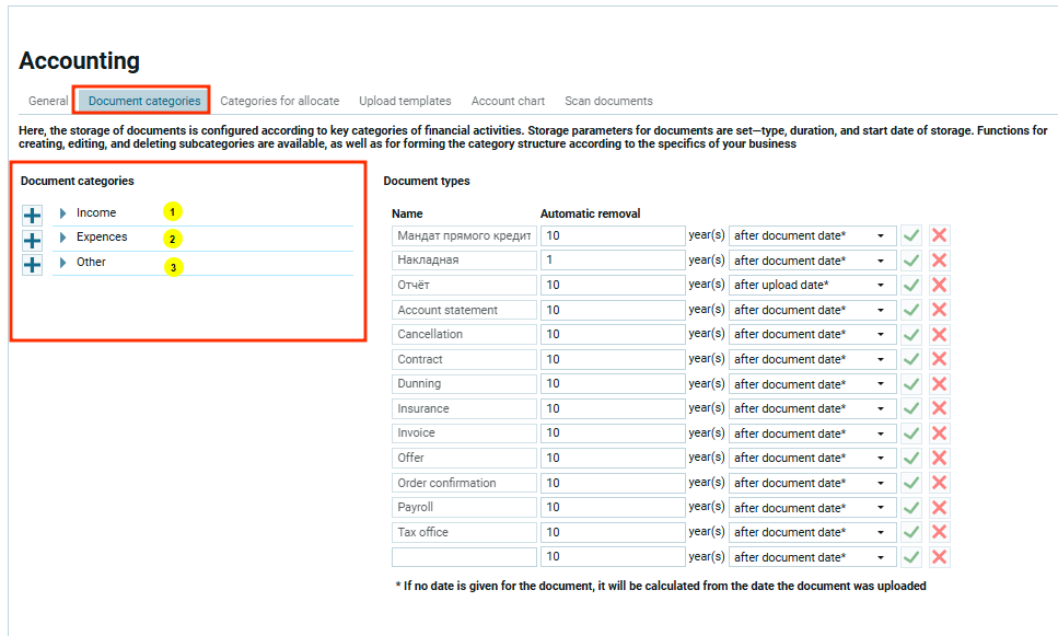 SET.ACC.DC.DC. Вкладка Категории документов. Категории документов