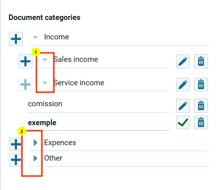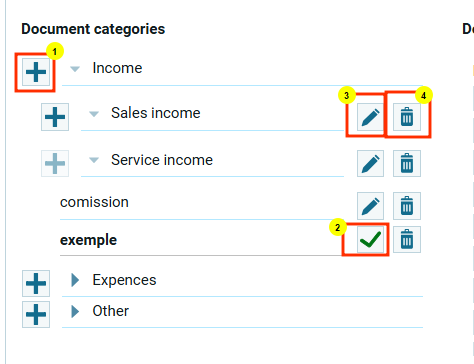 Откроется выпадающий список, где можно вносить новые статьи и подстатьи. После ввода новой позиции нужно нажать для сохранения иконку (4)