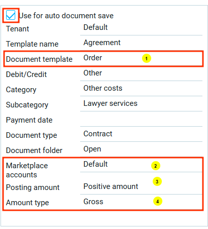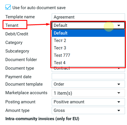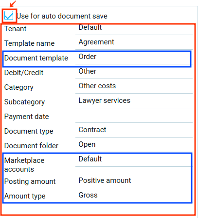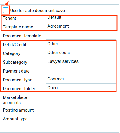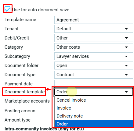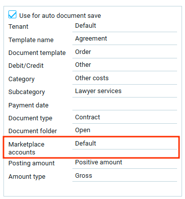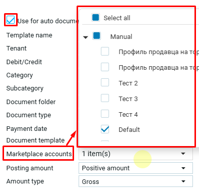 Выбор аккаунта маркетплейса доступен только для шаблона с активной функцией автосохранения документов.