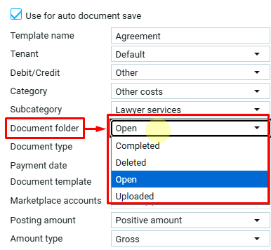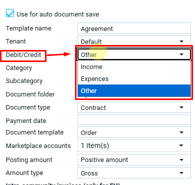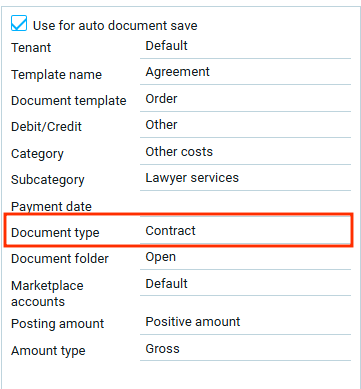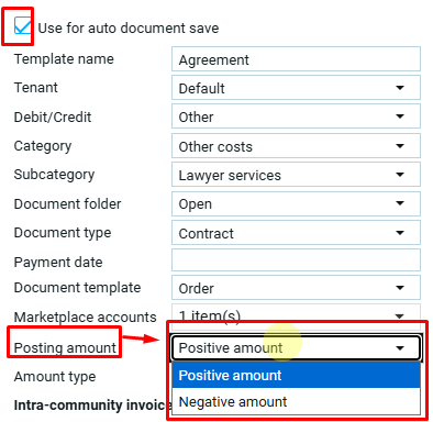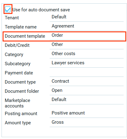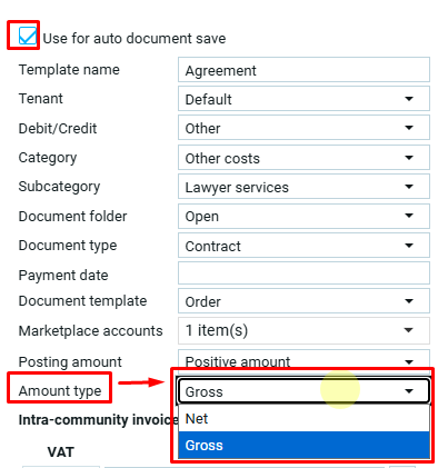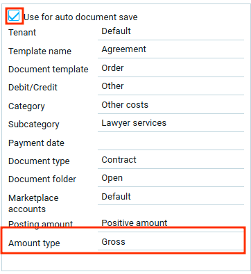 Выбор значения в поле тип суммы доступен только для шаблона с активной функцией автосохранения документов.