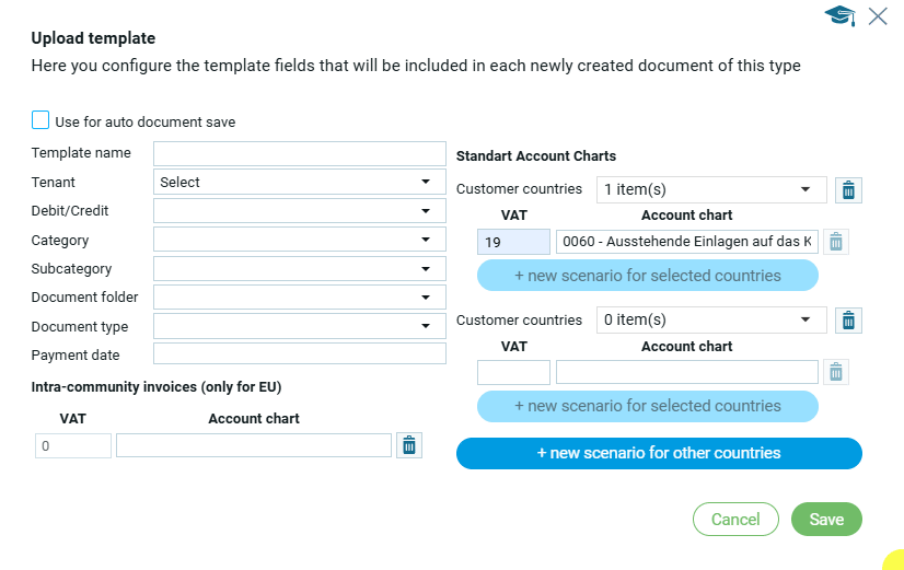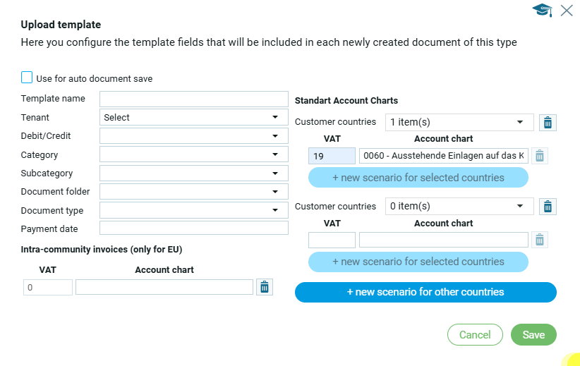 Новый сценарий для других стран предполагает заполнение данных по НДС для других стран, отличных от выше выбранных.