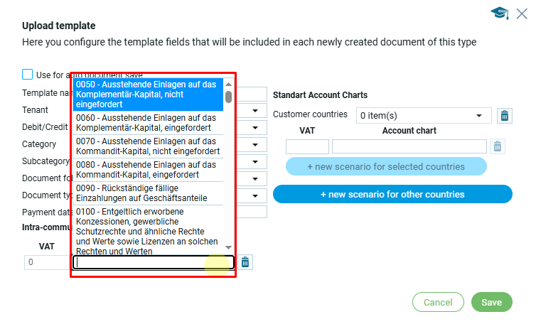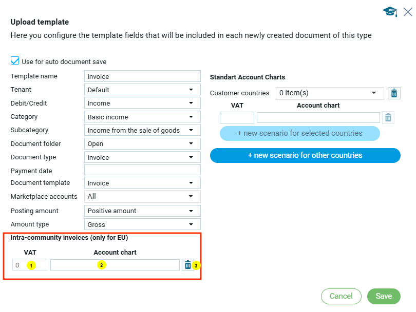 Если пользователь использует внутригосударственные счета (только для ЕС), то в шаблоне он заполняет соответствущие поля: