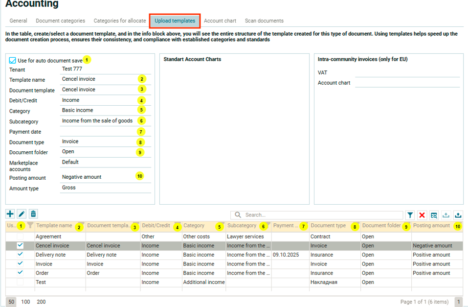 SET.ACC.UT.1. Таблица Шаблонов для загрузки