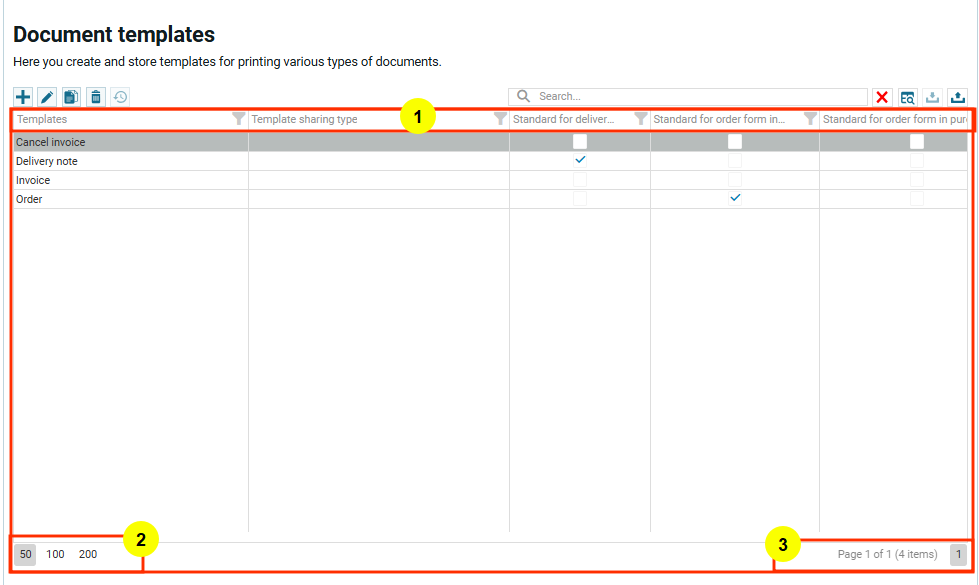 Если у пользователя в списке, например, 250 шаблонов, и он выбрал отображать на странице 50 штук, то в итоге в таблице будет 5 страниц.