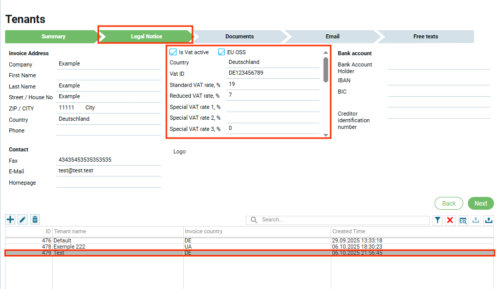 5. Ставки НДС стандартные и льготные – применяемая ставка НДС. Значения ставок заполняются автоматически после выбора пользователем страны, где он зарегистрирован в качестве плательщика НДС.