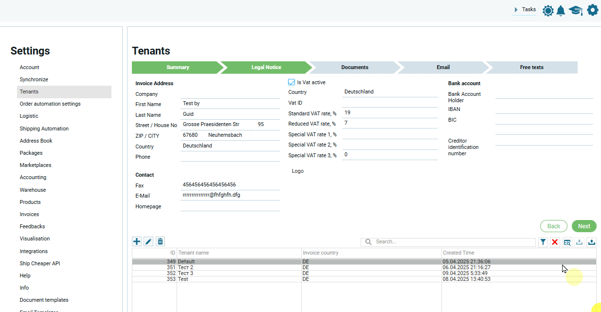 Вкладка Основная информация в модальном окне содержит одно поле – название мандата. Один мандат создается автоматически при регистрации с названием “Default“. Все последующие мандаты создает и именует пользователь;