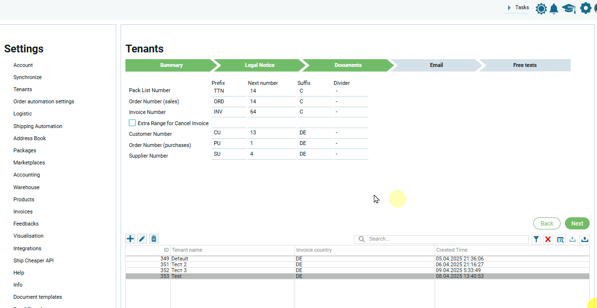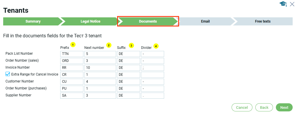 - Следующий номер документа — номер нового обьекта, который будет создан в системе;