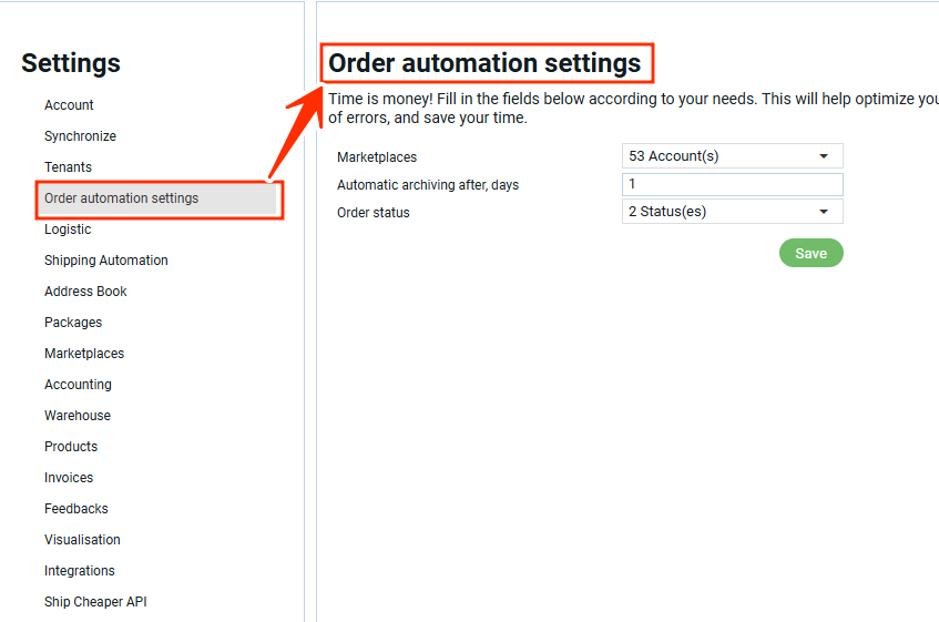 Чтобы выбранные параметры были применены для автоматизации заказов, необходимо нажать кнопку «Сохранить».