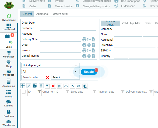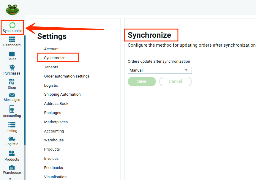Синхронизация приложения с маркетплейсами означает автоматический обмен данными между платформой BillOrga и торговыми площадками (Ozon, Amazon, eBay и др.). Т.е. что бы заказы с маркетплейсов загрузились в приложение нужно воспользоваться синхронизацией.