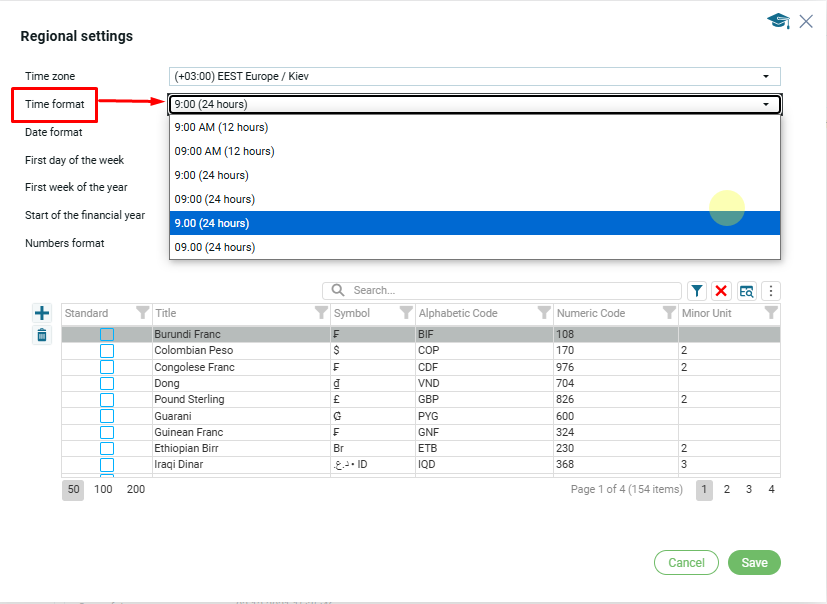 You can select the desired time format from the dropdown list: