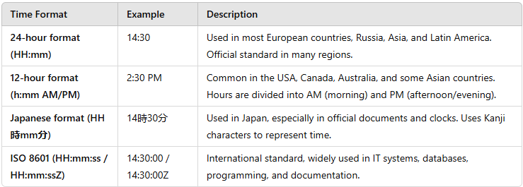 Main time formats: